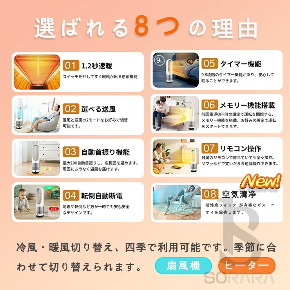 セラミックヒーター 冷暖兼用 2秒速暖 電気ストーブ 羽根なし 小型 暖房器具 温冷風扇 暖風機 UV除菌 扇風機 冷暖型 大風量 冬さ対策し サーキュレーター 温風ヒーター タワーファン 11段階 静音 ファンヒーター 足元 リモコン付き 子供部屋 省エネ 空気清浄機