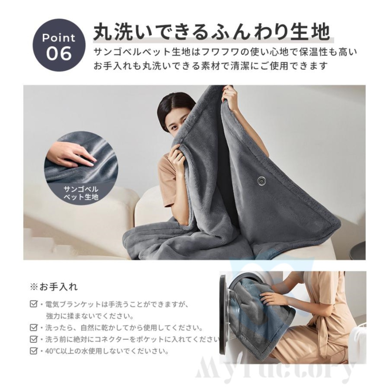 就寝時は布団の下から伝わる冷えを防いで、電気毛布があたためる。 寝室以外でも冷えがツライ時に気軽に使える。