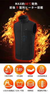 ◆【前後9箇所加熱】前後別れて9つの加熱ヒーターが内蔵され、9箇所を効率よく温まり、寒い季節の通電式ベストです。男女兼用で、通勤通学など普段使いはもちろん、登山などのアウトドア活動までも大活躍、冬を思う存分楽しむことができます。