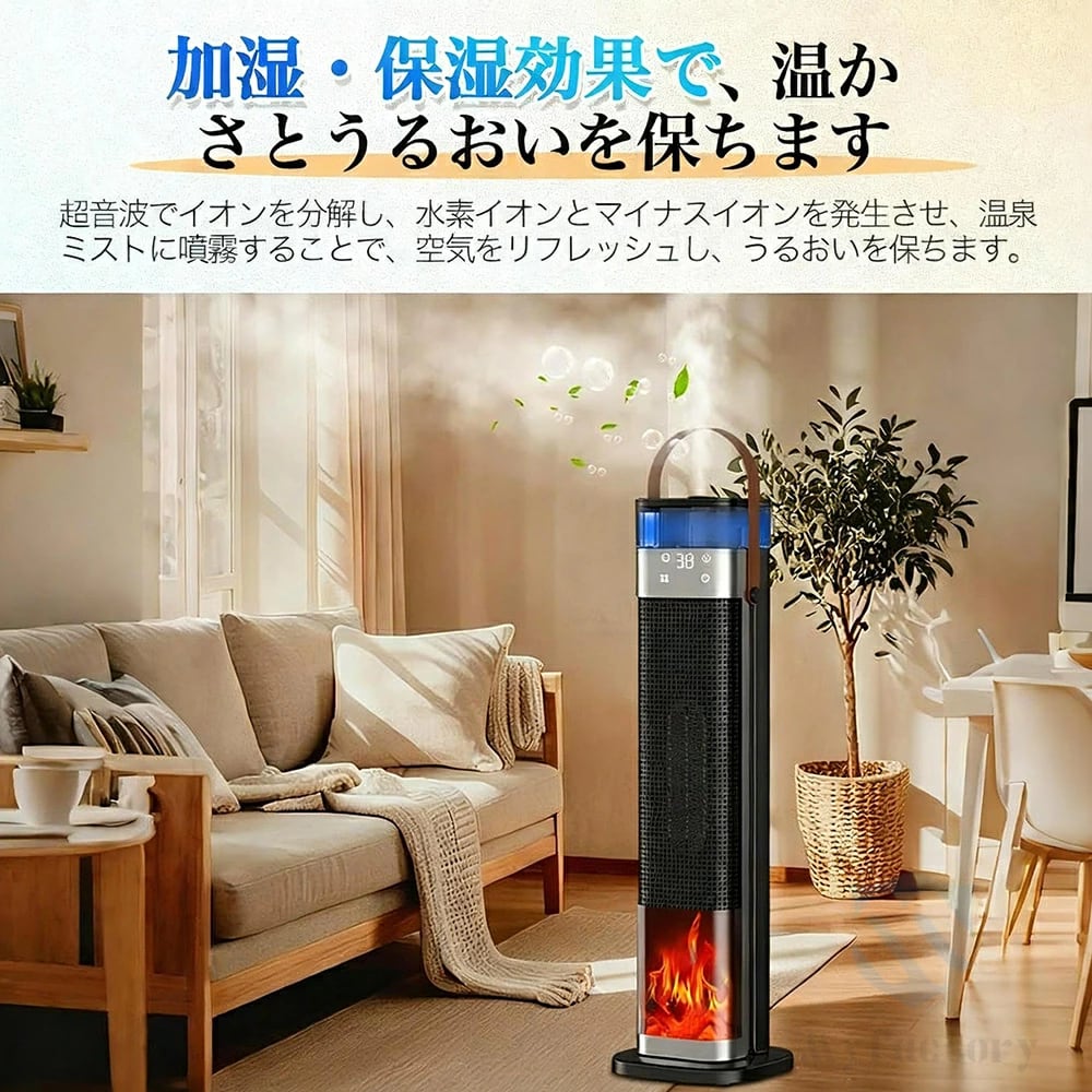 「2025年最新型&2秒速暖」セラミックヒーター ファンヒーター 速暖 加湿器 暖房器具 霧化加湿 大風量 省エネ 温度調節可能 首振り炎風景 持ち運び 低騒音 小型 電気ファンヒーター 電気ストーブ 即暖 足元 電気 安全 転倒OFF リモコン付き オフィス おしゃれ