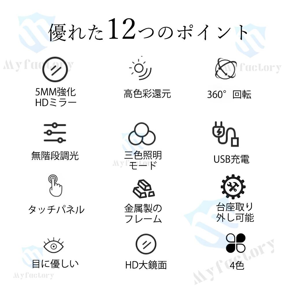 女優ミラー 卓上ミラー ライト付き 丸型 USB充電式 大きい おしゃれ 化粧ミラー 北欧 インテリア ledミラー 調光調色 コードレス 卓上 鏡 かわいい アンティーク メイク鏡 高精細 高輝度 明るさ調整 化粧鏡 メイク アップ ミラー ドレッサー 母の日 誕生日 プレゼント 50cm
