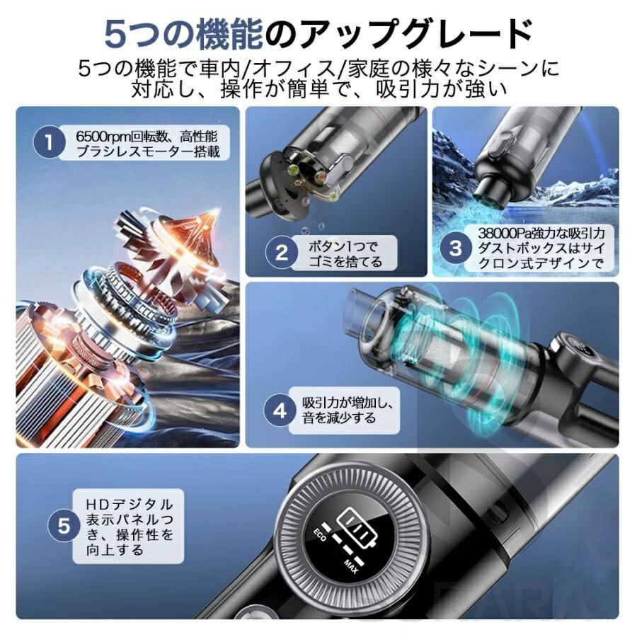 掃除機 コードレス ハンディクリーナー 吸引力 充電式 超強力 多機能 5WAY 強力吸引 48000pa 車用掃除機 LED残量表示 業務用 家庭用 車用清掃 小型 コードレス掃除機 軽量 乾湿両用 モップ ダニ駆除 スティッククリーナー 省エネ USB充電式 電気掃除機 一人暮らし