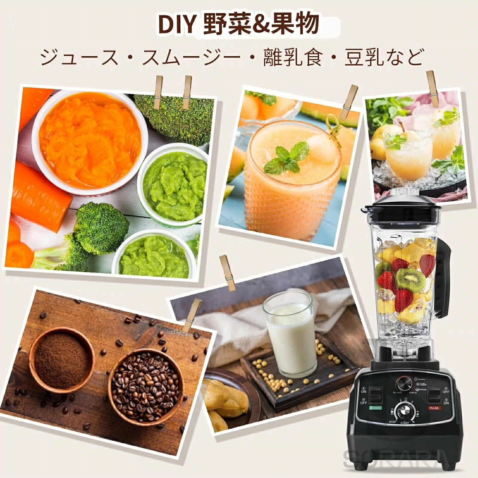 【多機能ミキサー】 2200Wプロ仕様のミキサー、ジューサー、ブレンダー、スムージーメーカー、豆乳機、離乳食機、肉挽き器、フードプロセッサー、グラインダーミキサー9in1。家庭用、業務用として最適。