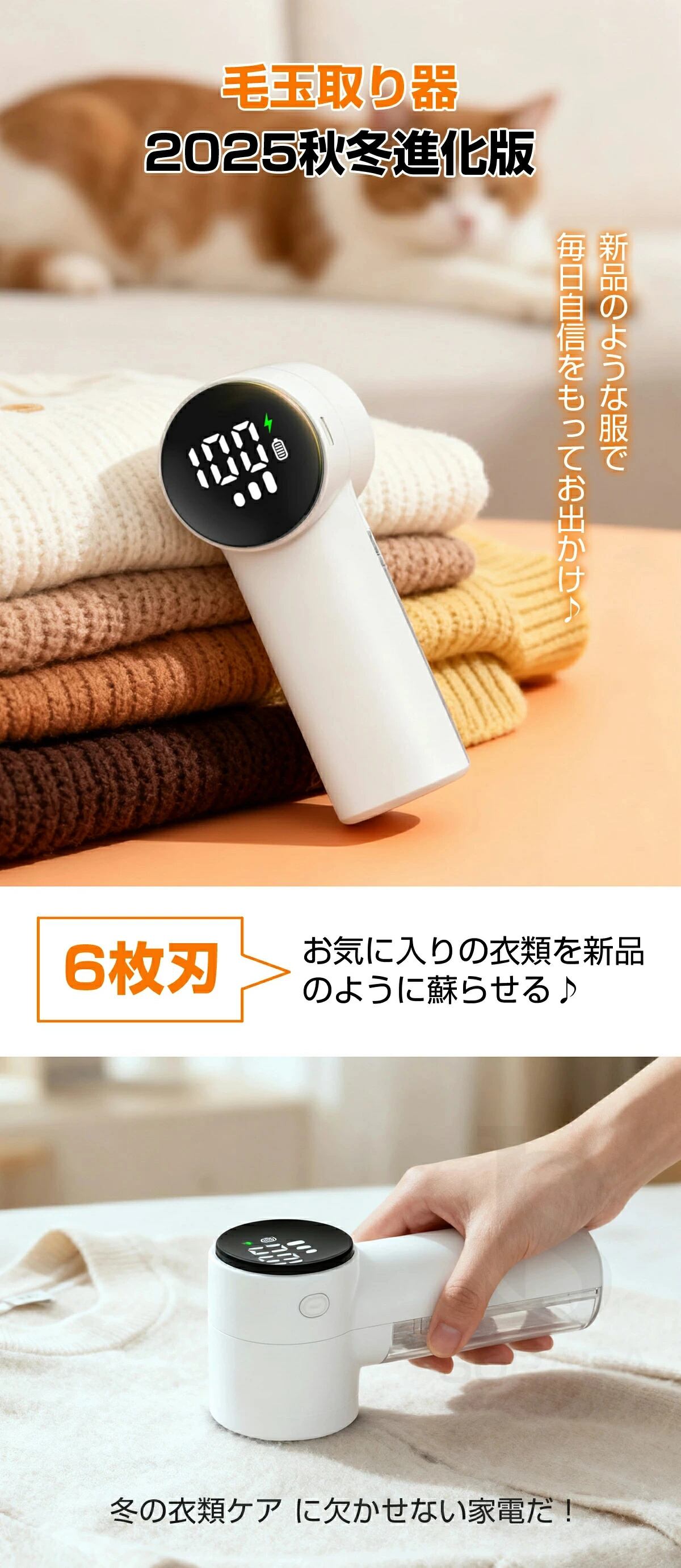 【2025進化版】毛玉取り 毛玉取り器 電動 強力6枚刃 生地を傷めない けだまとり 電動 毛玉取り機 充電式 大容量&透明ゴミポケット 3段階調整 毛玉クリーナー 毛玉カット エチケットブラシ LEDディスプレイ 旅行自宅用クリスマス
