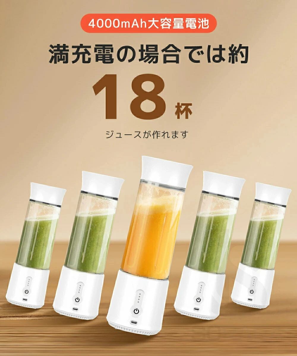 ミキサー スムージー 1台4役 ジューサー 丸洗い可 500ML コードレス 携帯ジューサー 氷も砕ける パワーバンク 保護機能 USB充電式 持ち運び便利