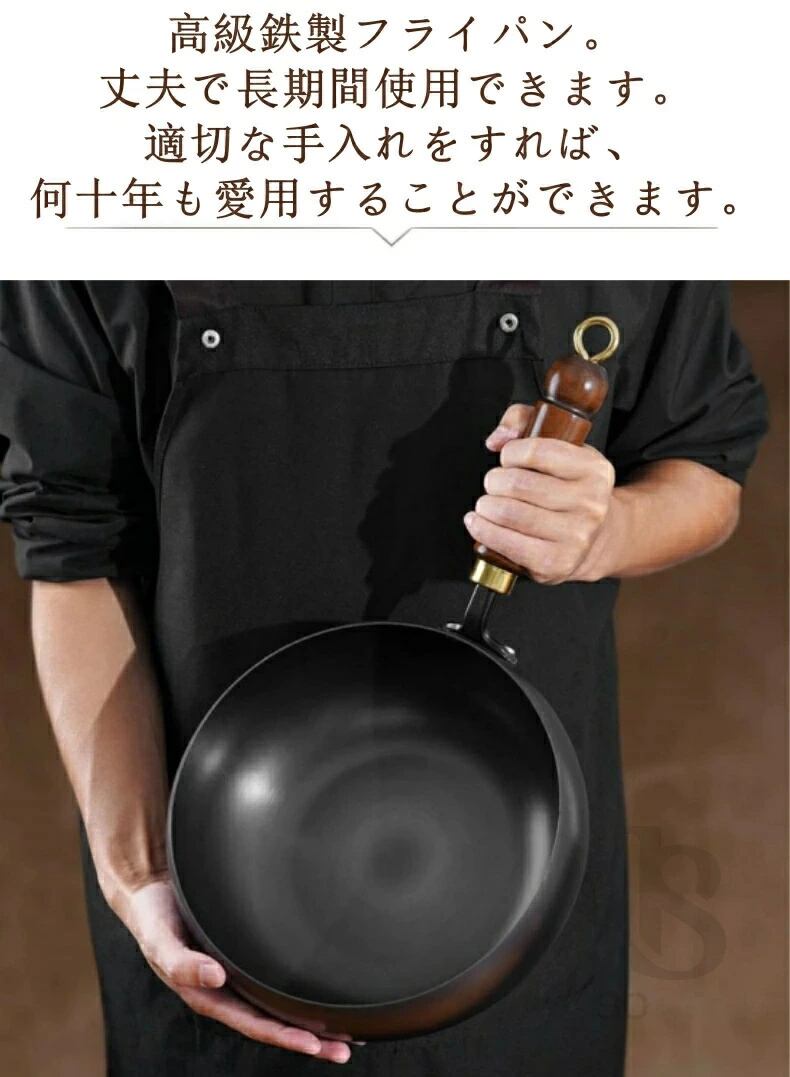 【健康をサポートする鉄製フライパン】コーティングなしの純鉄製フライパンは、料理しながら自然に鉄分を補給。美味しい食事と健康を同時に叶えます。