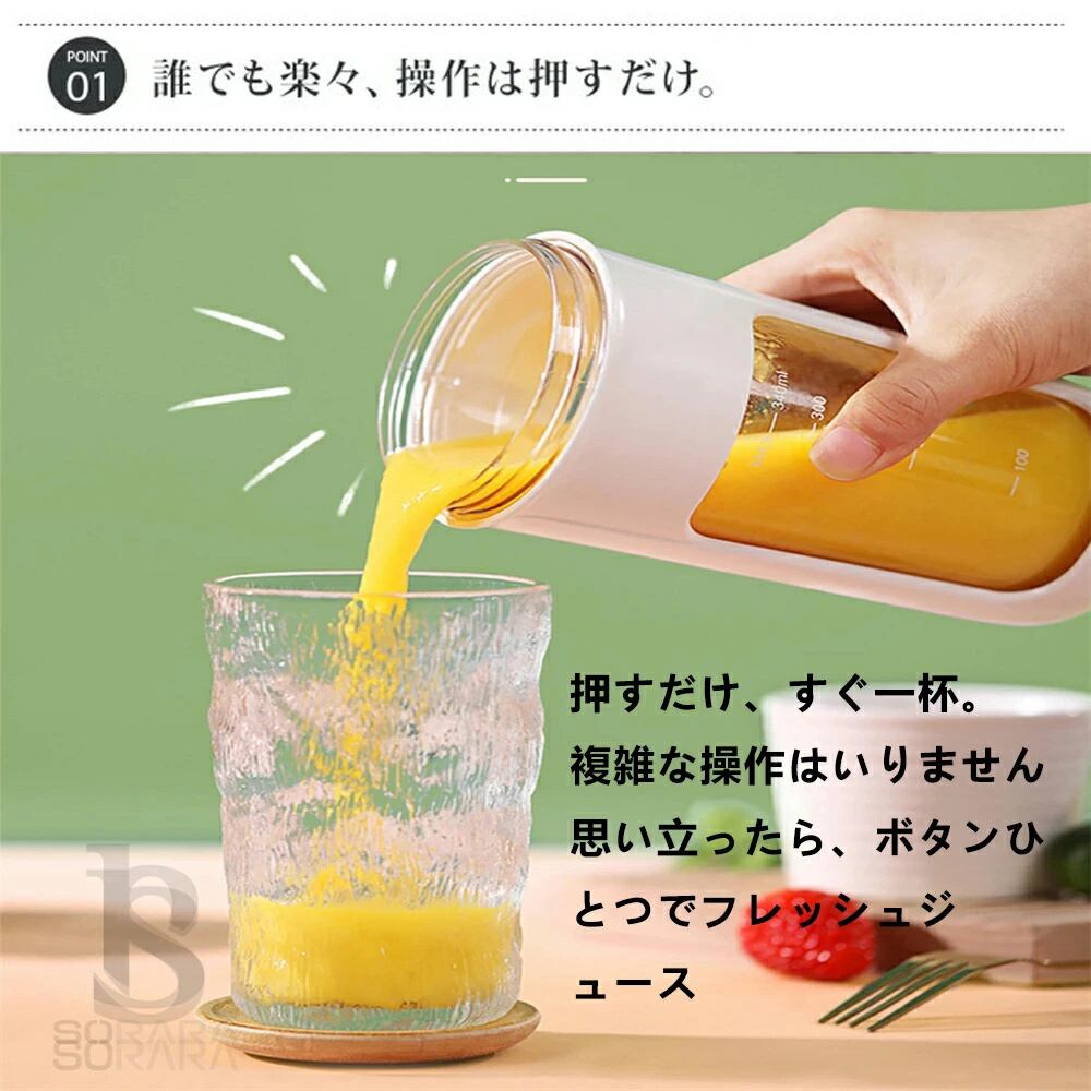 関連キーワード コードレスジューサー/ミキサー/ポータブルブレンダー/スムージー/離乳食/USB充電/丸洗い/自動洗浄/SUS304/6枚刃/500ml
