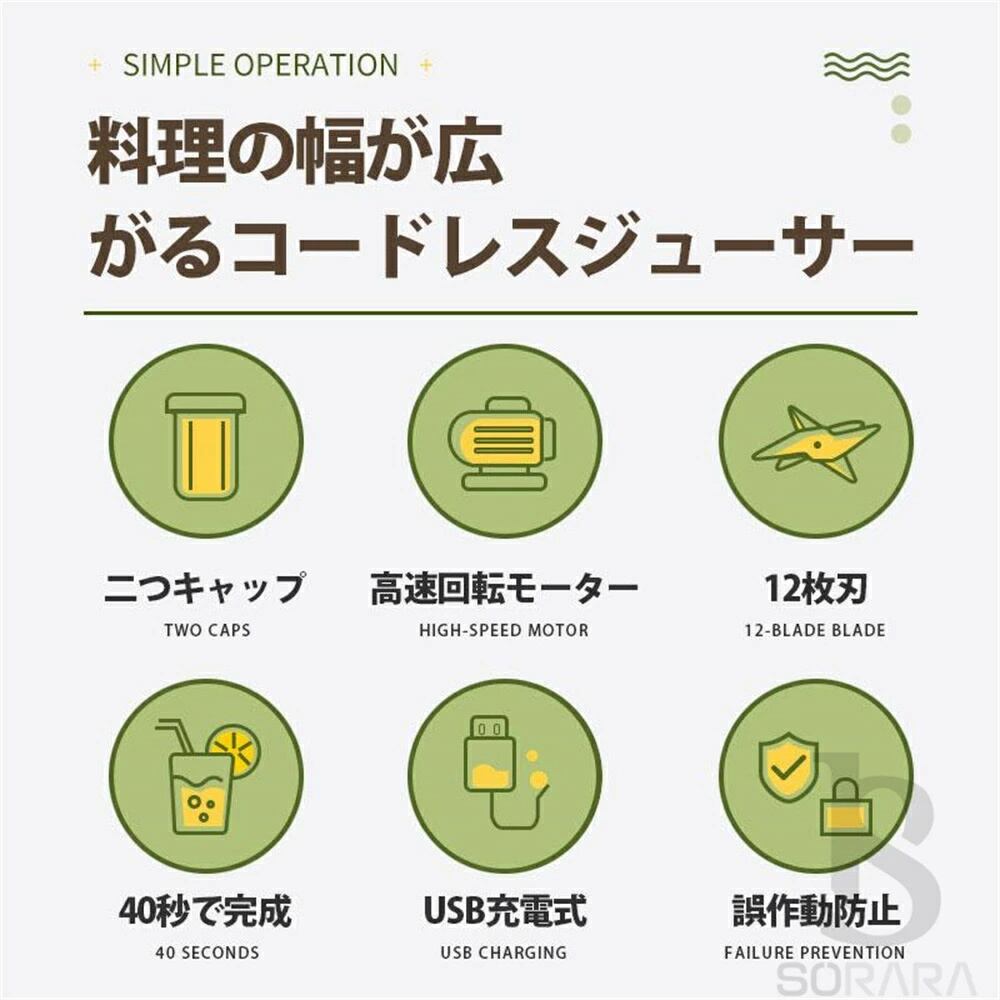 ミキサー ブレンダー ジューサー 小型 洗いやすい 500ML コードレス 携帯ジューサー USB充電式 お手入れ簡単 ジュース 持ち運び 野菜 果物