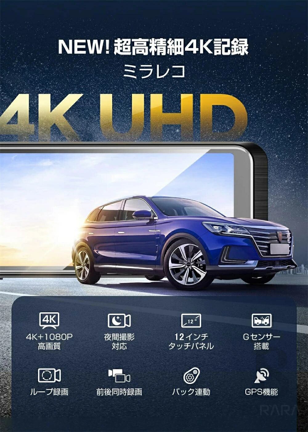 【商品情報】 ・商品名:BS02 ドライブレコーダー 【Type-C電源ポート&12インチIPSスクリーン】 【スーパー暗視機能&WDR/HDR搭載】 【上下画像+左右画像逆転可】 【Wi-Fi&GPS搭載】
