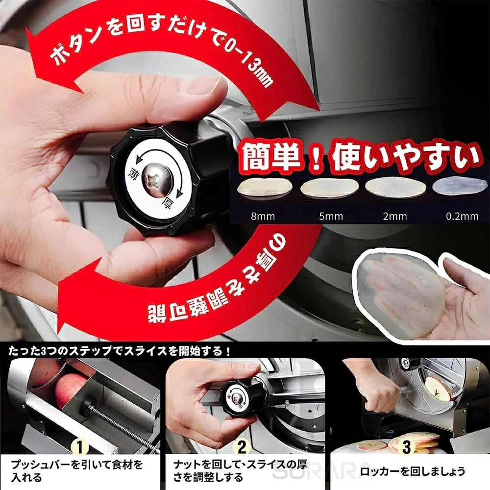 【安定で省力化】 底面に6個吸盤が付いているため、安定した姿勢で作業できます。省力ハンドル付き、玉ねぎやきゅうり、にんじんなどのスライスが短時間で手軽に行えます。