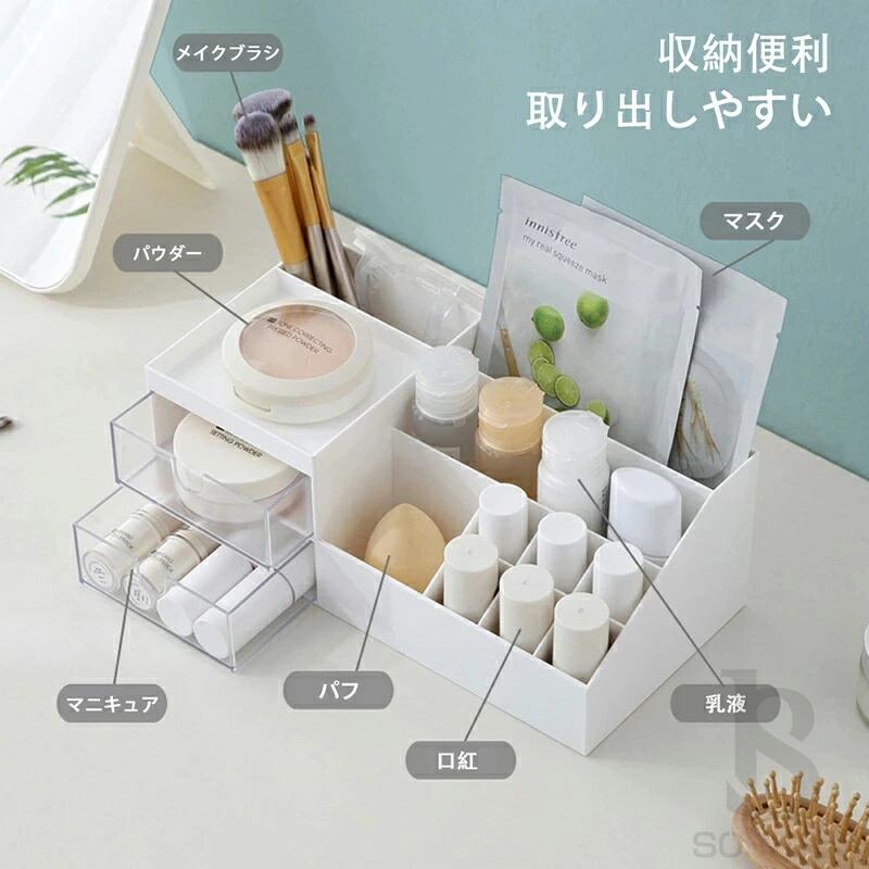 【とても便利】 上には仕切りの設計で、取り出しやすし、頻?使用ものを整理整頓できます。下は透明な引き出しになっており、使用頻度が低く、丁寧に保管したいものを収納することができます。底面には滑り止めで、ずれたりにくい。