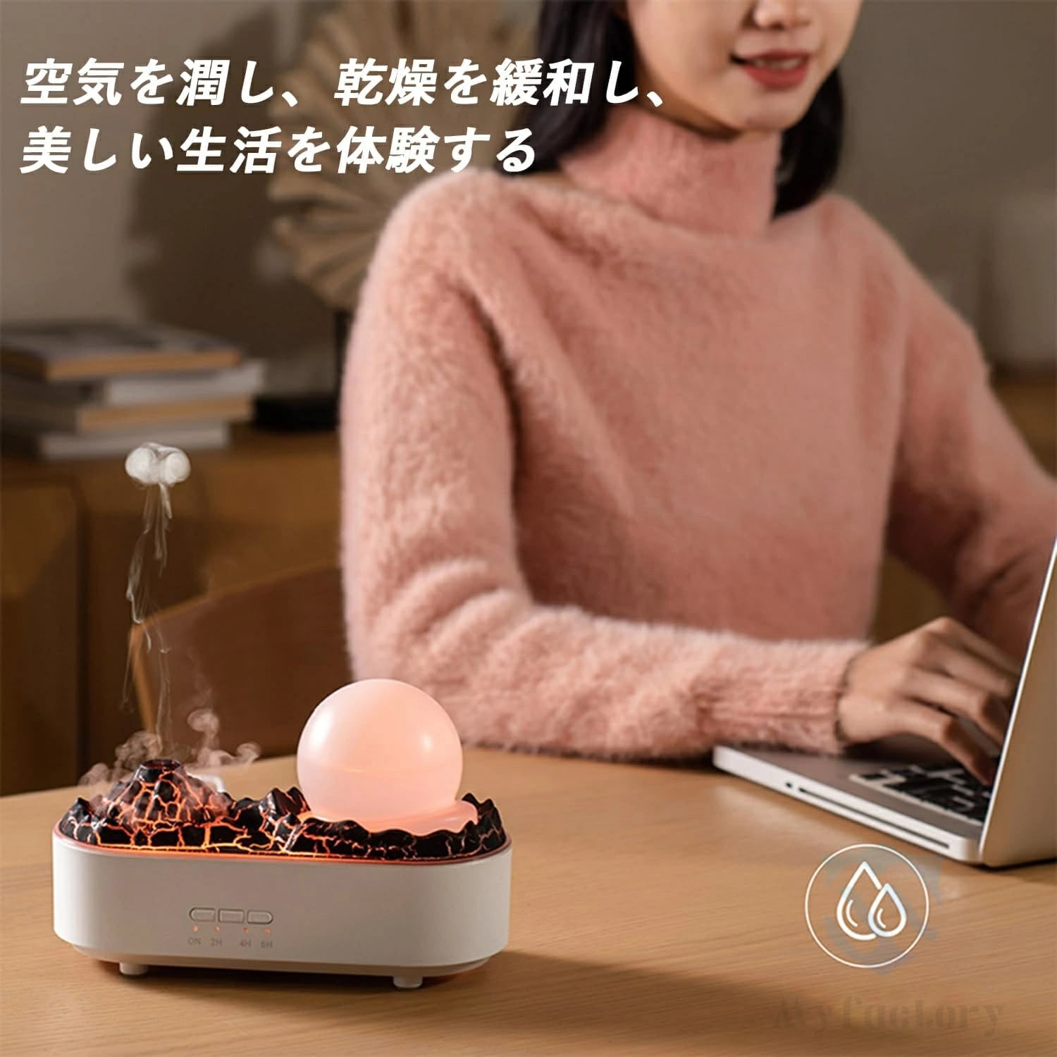 【お好きな香りに対応】加湿機能だけでなく、アロマオイルなどを添加することでアロマディフューザーとしても使用できます。お好きなアロマオイルを数滴入れることで、室内の湿度を効果的に高めたり、空気の匂いを改善したり、肌に栄養を与えたりすることができます(本製品には加湿器のみが含まれており、エッセンシャルオイルなどの液体は含まれていません)。