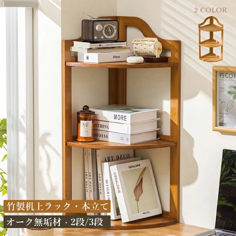 コーナーラック 卓上 ブックスタンド 2段 3段 スリム ディスプレイラック コンパクト ナチュラル デスクシェルフ コーナー 収納 棚 机上コーナー 無垢材 卓上ラック ブックラック 机上 ブラウン