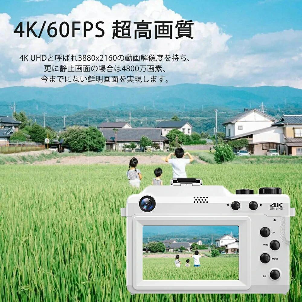 【2024最新オートフォーカスデジタルカメラ】このデジタルカメラはオートフォーカス機能を搭載しております。シンプルな操作で自動的にピントを合わせて、初心者でも鮮明的に写真を撮ることができます。(シャッターボタンを浅い押してピントをあわせます。更に深く押して撮影できます)。また4Kビデオ解像度と最大5600万の写真解像度という高画質で、いつでもご家族やお友達との楽しい時間をとらえて記録できます。