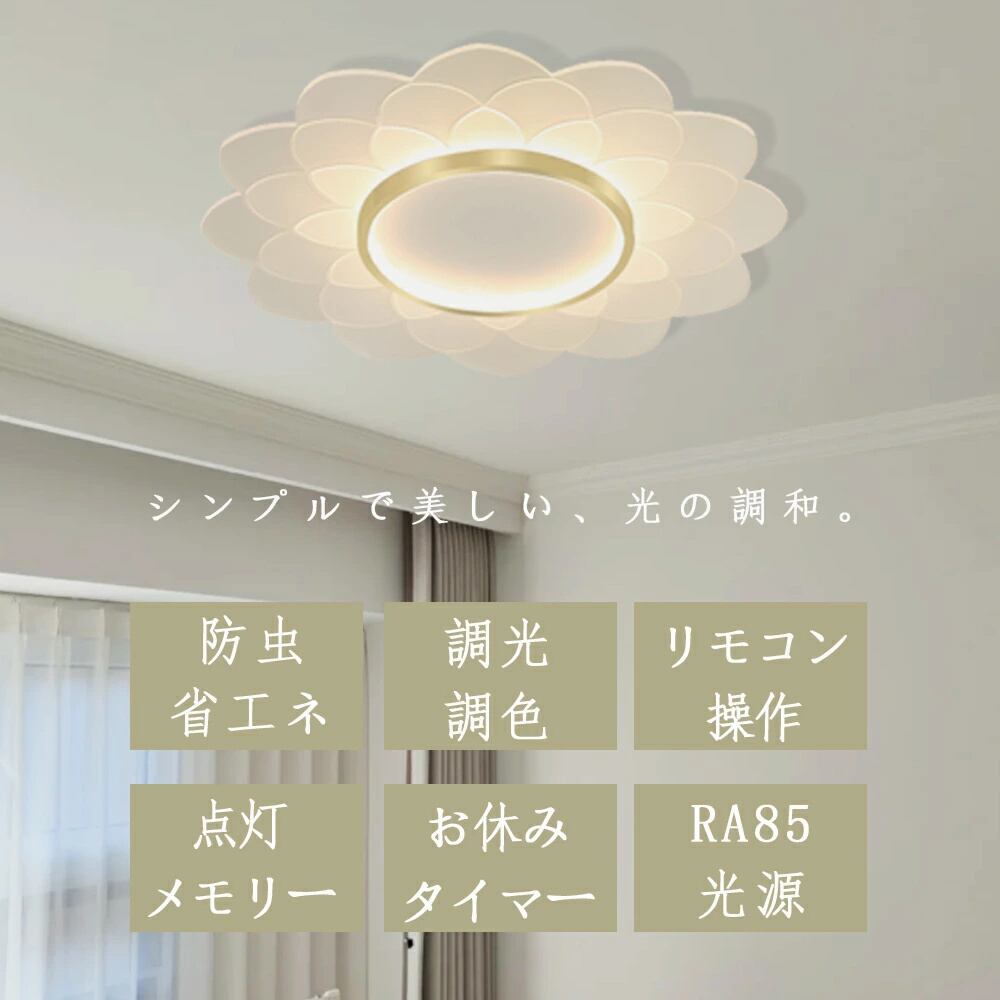 シーリングライト LED 北欧 おしゃれ 調光調色 リビング 照明 天井照明 照明器具 かわいい 子供部屋 電気 寝室 リモコン付き スマホ 操作 6畳 8 10 12畳 シーリング照明 ダイニング 明るい アッパーライト 居間ライト 花 PSE認証