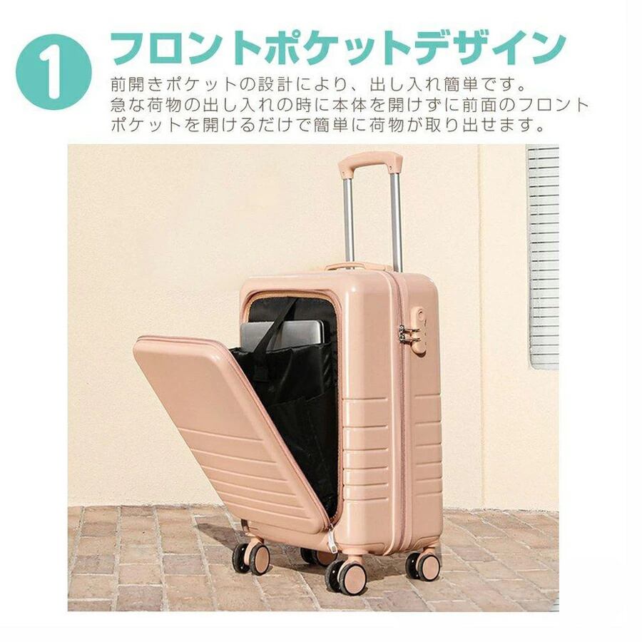スーツケース mサイズ キャリーケース フロントオープン Mサイズ 60L 8カラー選ぶ 4-7日用 泊まる 上開き カップホルダー付き 軽量 大容量 多収納ポケット トランク 修学旅行 海外旅行 ラベル 国内旅行 小型ABS しゃれ 人気 短途旅行