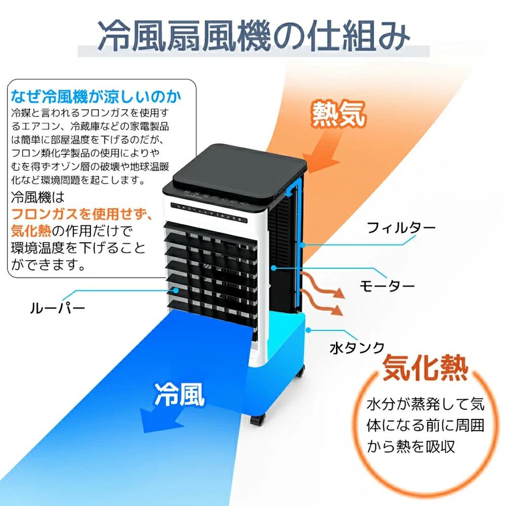 冷風機 冷風扇 涼しい 冷風 扇風機 強力 小型 家庭用 静音 自動首振り 風量3段階 冷風モード タッチ操作 10L大容量タンク 切タイマー キャスター付き スポットクーラー 冷風ファン スリムタワー型 パワフル リビング 上下左右首振り