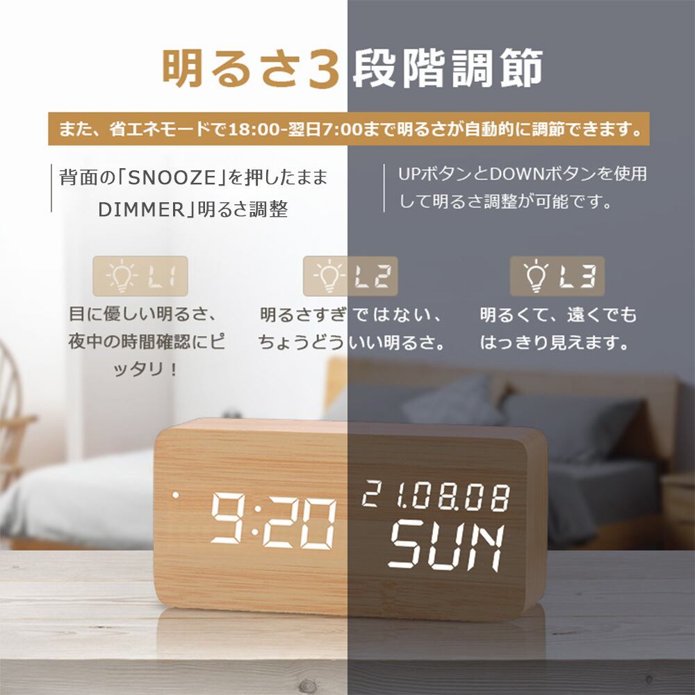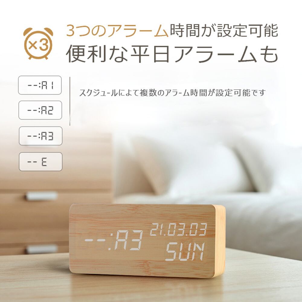 置き時計 置時計 時計 目覚まし時計 コードレス デジタル時計 ウッドクロック 北欧 アラーム 木製 卓上 LED表示温度計カ インテリア かわいい 木目調 子供 プレゼント 結婚祝い