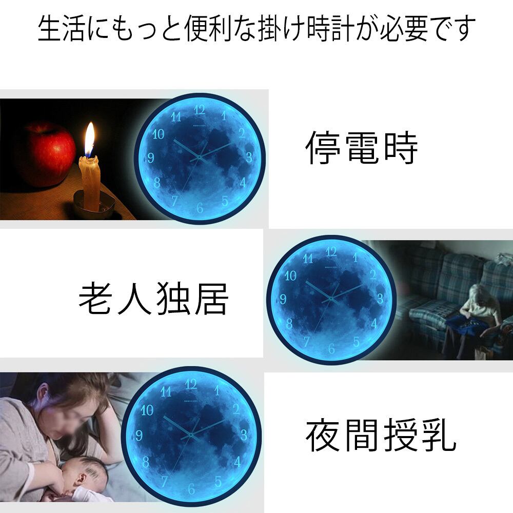 掛け時計 時計 壁掛け時計 光る 夜行性 発光 見やすい ナイトライト LED 月型 音声制御 夜も見える 昼夜切り替え サウンドコントロール ユニーク 5色 掛時計 柱時計 子供部屋 玄関 応接間 ベッドルーム 音がしない