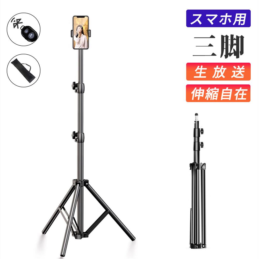 三脚 スマホスタンド 高い 長い スマホ 携帯 スタンド スマホ三脚 自撮り棒 iphone アンドロイド iphoneスタンド 自撮り 軽量 コンパクト スマホ用三脚 便利 三脚スタンド 210cm リモコン付き 送料無料